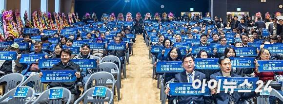 이날 조용호 캠프에서 열린 지지 선언 자리에는 민주당 오산시 지역위원회 고문 등 100여명이 함께했다.