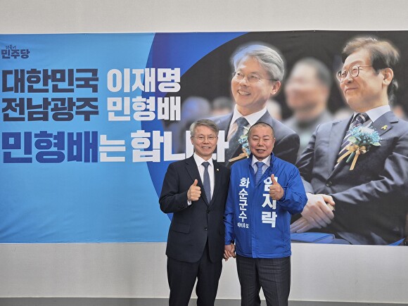 [아이뉴스24 김상진 기자] 더불어민주당 임지락 화순군수 예비후보가 24일 민형배 민주당 전남광주통합시장 후보 선거사무소를 방문해 화순군 발전 전략을 논의하고 정책 공조에 나섰다.