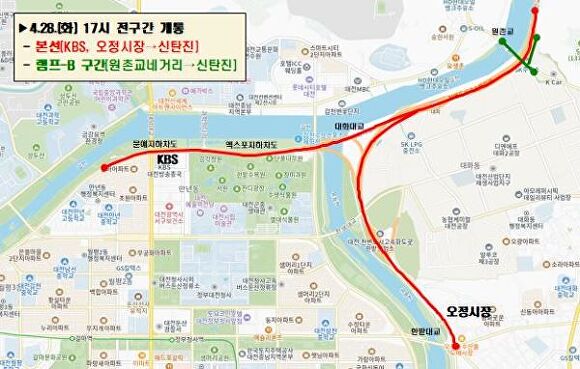 이번에 개통되는 구간은 천변도시고속화도로 본선(둔산→ 신탄진 방향)과 원촌교네거리에서 신탄진 방향으로 연결되는 원촌육교 램프-B 구간이다.