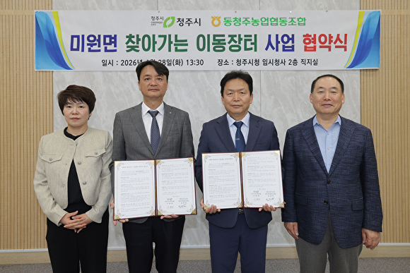 청주시는 28일 동청주농업협동조합과 ‘미원면 찾아가는 이동장터’ 운영을 위한 업무협약을 했다고 밝혔다.
