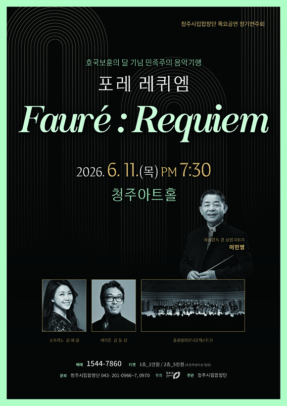 [아이뉴스24 안영록 기자] 충북 청주시립합창단(예술감독 겸 상임지휘자 이민영)이 오는 6월 11일 오후 7시30분 ‘포레 레퀴엠’을 공연한다.