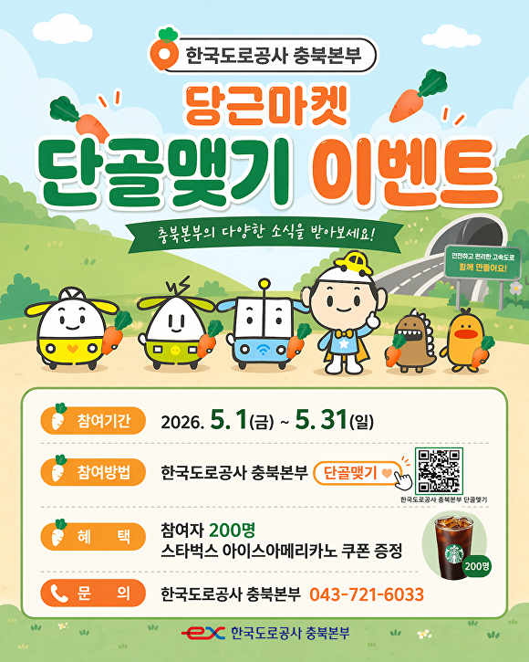 임종택 도로공사 충북본부장은 “당근 프로필 개설을 계기로 단순 정보 전달이 아닌, 지역주민과의 유익한 소통 창구로 활용하겠다”고 말했다.