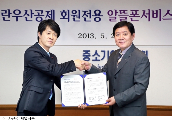 온세텔레콤과 중기중앙회는 이날 여의도 중기중앙회 사옥에서 소상공인의 통신비 절감을 위한 스노우맨 제휴판매 업무협약(MOU)을 체결했다.