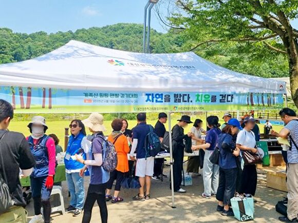 걷기 코스를 따라 체험을 진행해 참가자 모두가 함께 어울리고 소통할 수 있는 시간을 마련했으며, 계족산의 아름다운 자연 속 숲속 음악회장에서 대전광역정신건강복지센터 소속 ‘해피바이러스 공연단’의 오카리나 연주를 자연경관과 힐링의 분위기를 더했다.