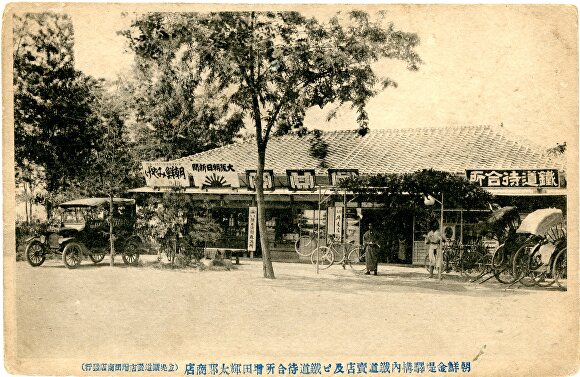 해당 사진은 일제강점기인 1920~30년대경으로 추정되며, ‘철도대합소(鐵道待合所)’라는 간판이 선명하게 남아 있다.