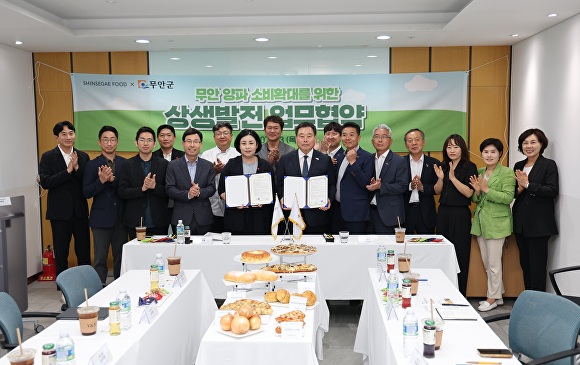 김산 무안군수와 원정훈 신세계푸드 제과점 담당이 함께한 이번 협약은 무안 양파를 사용한 베이커리 제품 개발과 판매, 무안 양파 홍보와 상표 인지도 제고 등에 대한 상생협력을 목적으로 한다.