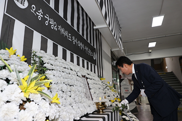 [아이뉴스24 장예린 기자] 윤건영 충북도교육감이 오송 지하차도 참사 2주기를 앞둔 7일, 충북 청주시청 임시청사에 마련된 시민 분향소를 찾아 헌화했다.
