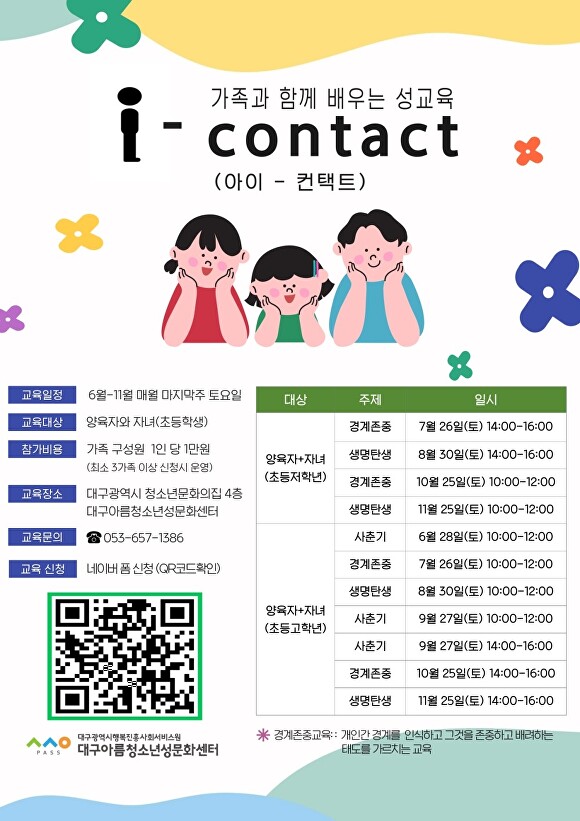 운영을 맡은 대구아름청소년성문화센터 관계자는 “청소년과 양육자가 함께 성교육에 참여함으로써 가정 내에서도 건강한 성 가치관이 형성될 수 있도록 돕고자 한다”고 밝혔다.