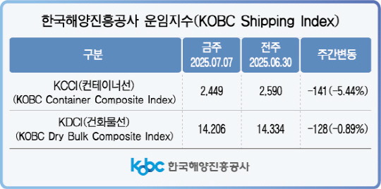 국내 해상운임 지표도 비슷한 흐름을 보이고 있다. 한국해양진흥공사가 8일 발표한 K-컨테이너해상운임종합지수(KCCI)는 2449포인트로 전주 대비 5.4% 하락했다.
