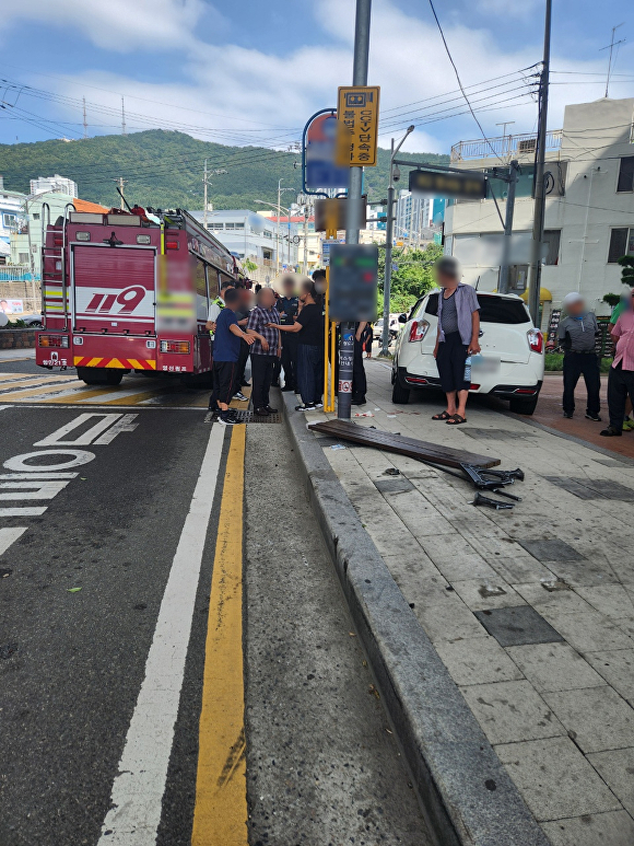 [아이뉴스24 박채오 기자] 10일 오후 2시쯤 부산 영도구 영선동의 한 회전교차로에서 스포츠유틸리티 차량(SUV)이 도로를 건너던 보행자 1명을 들이받은 후 인도 쪽으로 돌진, 버스정류장 벤치에 앉아있던 시민 3명을 연이어 들이받는 사고가 발생했다.