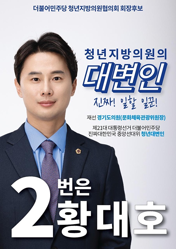 [아이뉴스24 정재수 기자] 경기도의회 황대호 의원(더불어민주당·수원3)이 더불어민주당 청년지방의원협의회장 선거 출마를 선언했다.