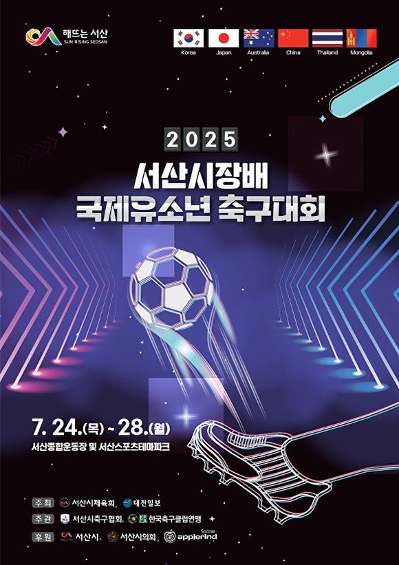 [아이뉴스24 정다운 기자] 충남 서산시가 ‘2025 서산시장배 국제 유소년 축구대회’를 오는 24일부터 28일까지 5일간 종합운동장과 스포츠테마파크 일원에서 개최한다.