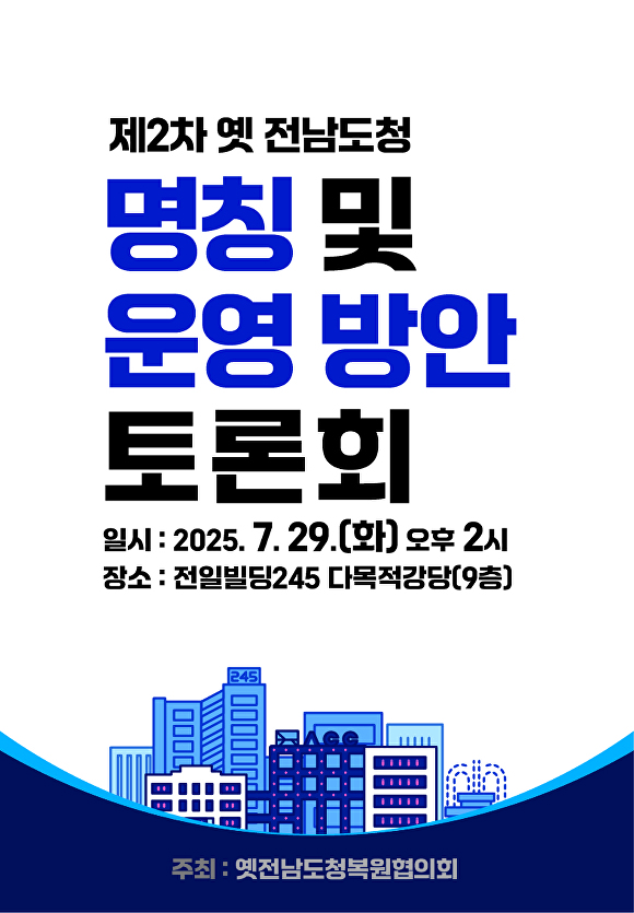 이번 토론회는 광주광역시, 문화체육관광부 옛전남도청복원추진단, 옛전남도청복원범시도민대책위원회로 구성된 옛전남도청복원협의회가 공동 주최한다.