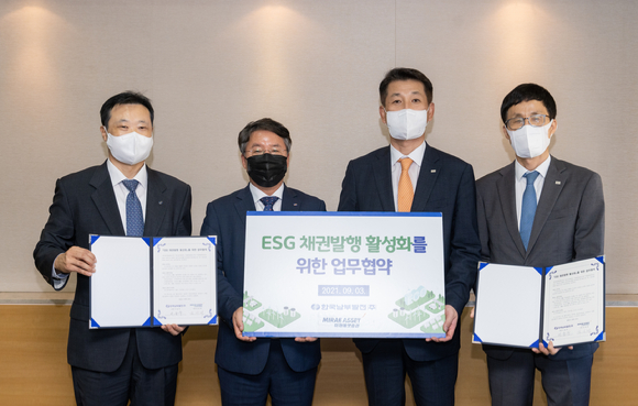 [아이뉴스24 오경선 기자] 미래에셋증권은 지난 3일 한국남부발전과 ESG(환경·사회·지배구조) 채권 발행을 위한 업무 협약식을 서울 여의도 사옥에서 진행했다고 6일 밝혔다.