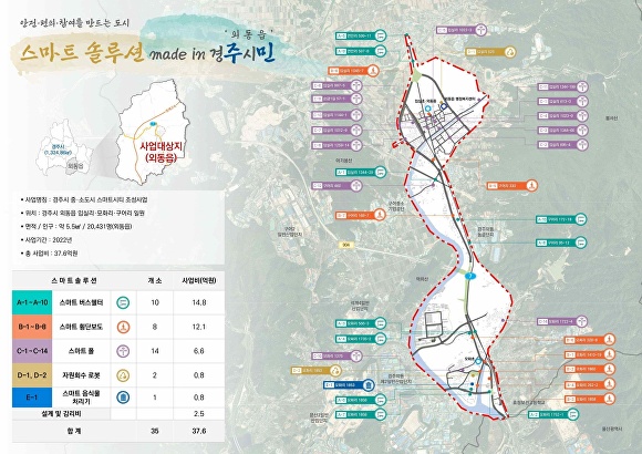 시는 사업비 37억원(국비·지방비 5:5)을 투입해 외동읍 입실리와 모화리·구어리 일대에서 교통·환경·안전 분야 스마트 솔루션 구축사업을 시행한다.