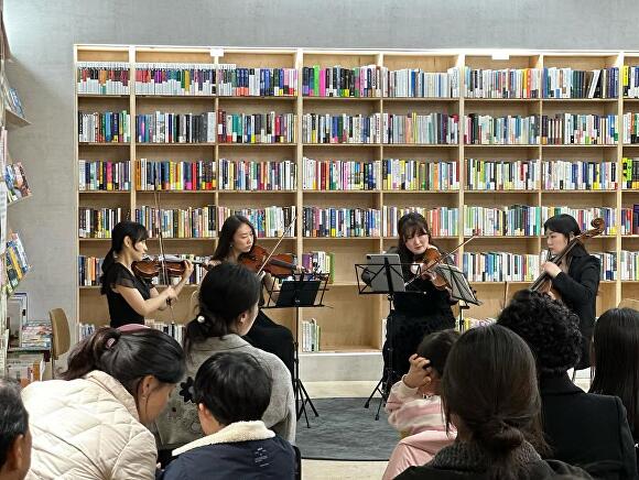 북북서점에서 시민들을 위한 현악 4중주 연주회가 열리고 있다. [사진=유나경 기자]