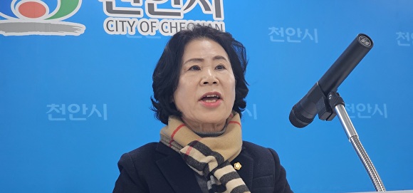 지난 1월 16일 김행금 천안시의회 의장 기자회견 모습 [사진=정종윤 기자]