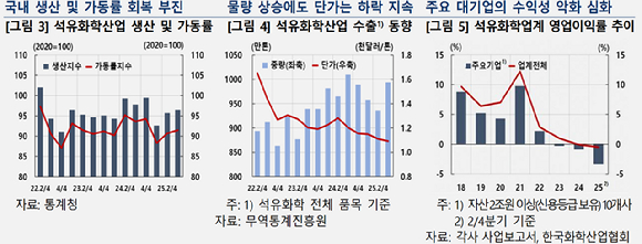 한은은 국내 수출은 중국·범용 제품에 집중해 있어 가격 변동 영향을 크게 받고, 나프타(에틸렌 생산 원료) 기반 설비 비중이 높아 원가 부담도 상대적으로 높은 것으로 나타났다고 설명했다.