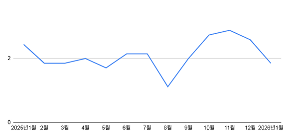 품목성질별 상승률을 살펴보면 상품은 1.3%인 반면 서비스는 2.5%로 나타났다.